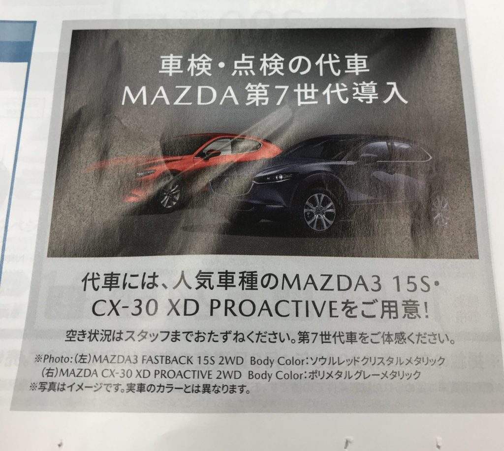 別に新しい代車でなくても全然良かったのですがOEMじゃない他のマツダ車に乗ってみたかったので正直残念。